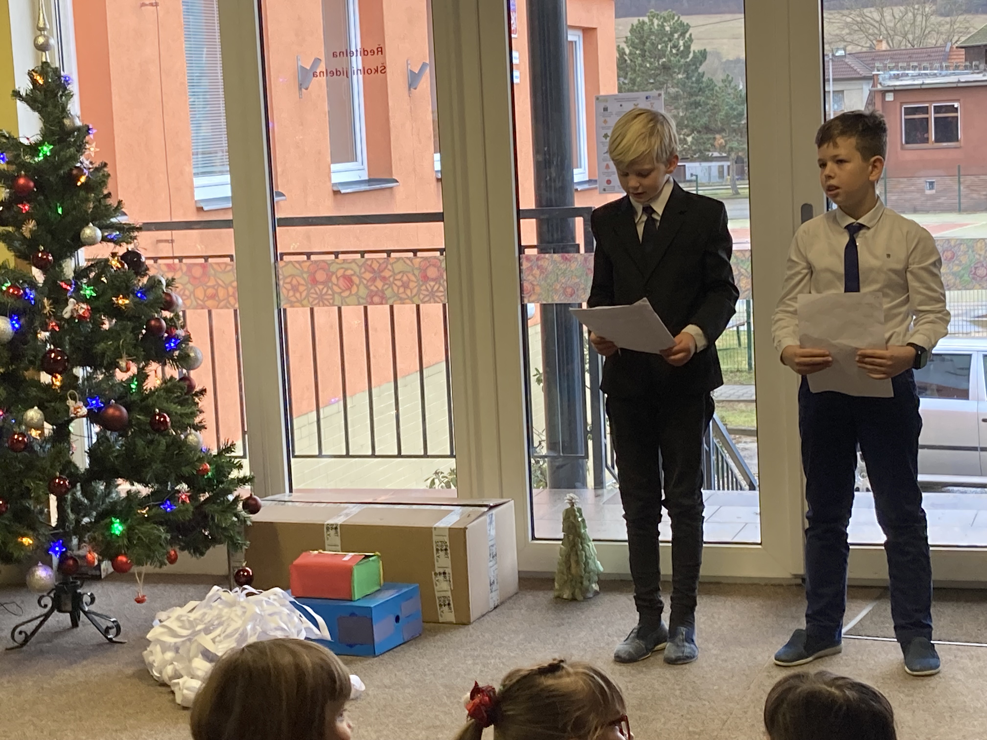 V poslední školní předvánoční den se konaly třídní vánoční besídky. Ve třídách se zpívalo, kreslilo, tančilo, hodovalo, rozbalovaly se dárky, hrál se turnaj v piškvorkách, sledoval film… Letošní novinkou byla společná besídka na školní chodbě. Jednotlivé třídy předvedly svá krátká vystoupení, která si v předvánočním čase secvičily. Viděli jsme tak velmi hezká hudební, pěvecká i dramatická vystoupení. Na závěr nás čekala ještě jedna nadílka pod vánočním stromem – nové hračky a hry pro vyžití o přestávkách.
